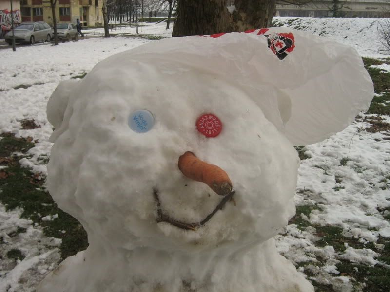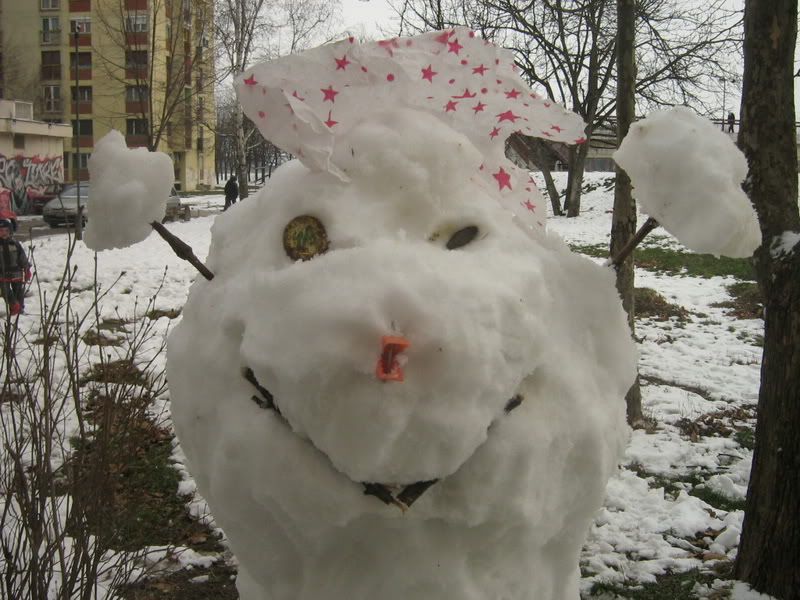 U nedelju sam sa svojim klincem napravio Sneška ispred svoje zgrade. Bio je